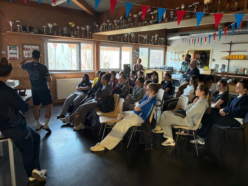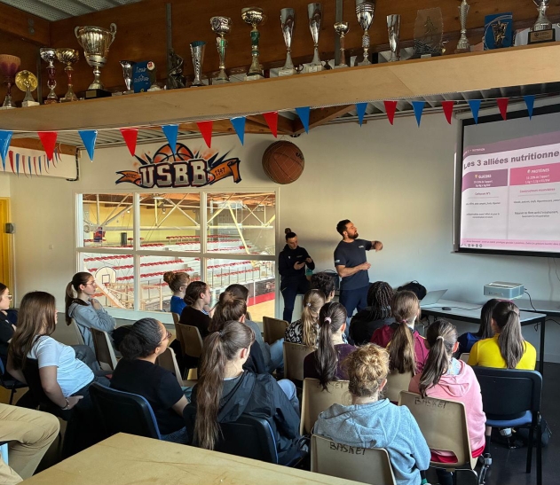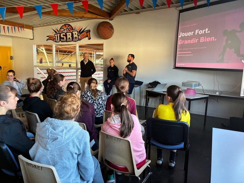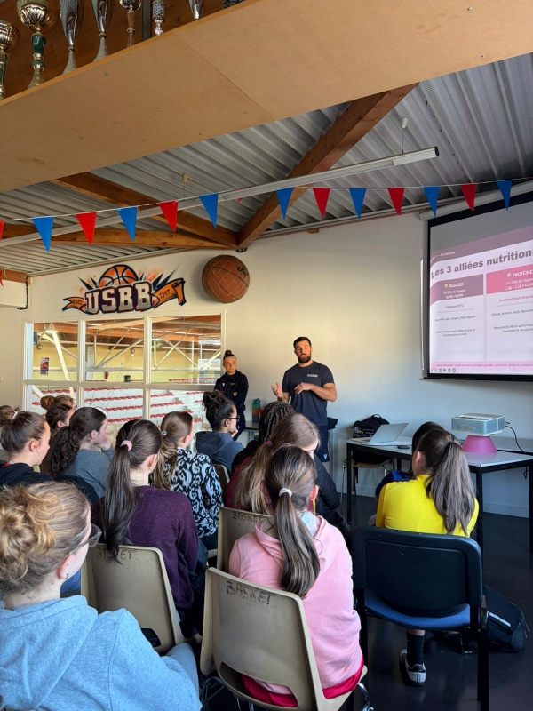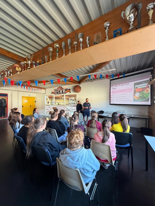 Dispensée par Xavier, préparateur physique et Sarah, joueuse en NF1 à l'ASM et étudiante BJEPS en préparation physique, cette intervention fut un moment d'échanges et de partages pour nos jeunes joueuses.